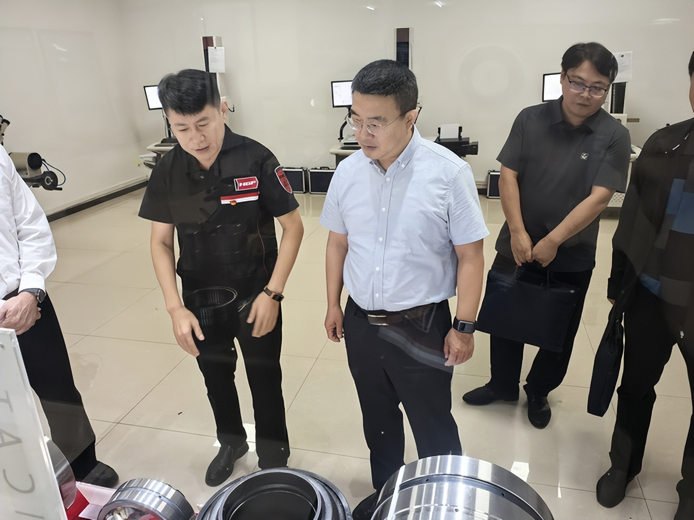uan Miao and her team visited the production workshop of Huagong Bearing, gaining a firsthand understanding of the bearing manufacturing process. They closely observed the production workflow, inquired in detail about the manufacturing techniques, intellectual property protection, and market expansion efforts. During their discussions with the company's leaders, they listened attentively to the challenges the enterprise was facing and the legal issues arising in production and operation. They provided specific guidance to address the legal concerns raised by the company.